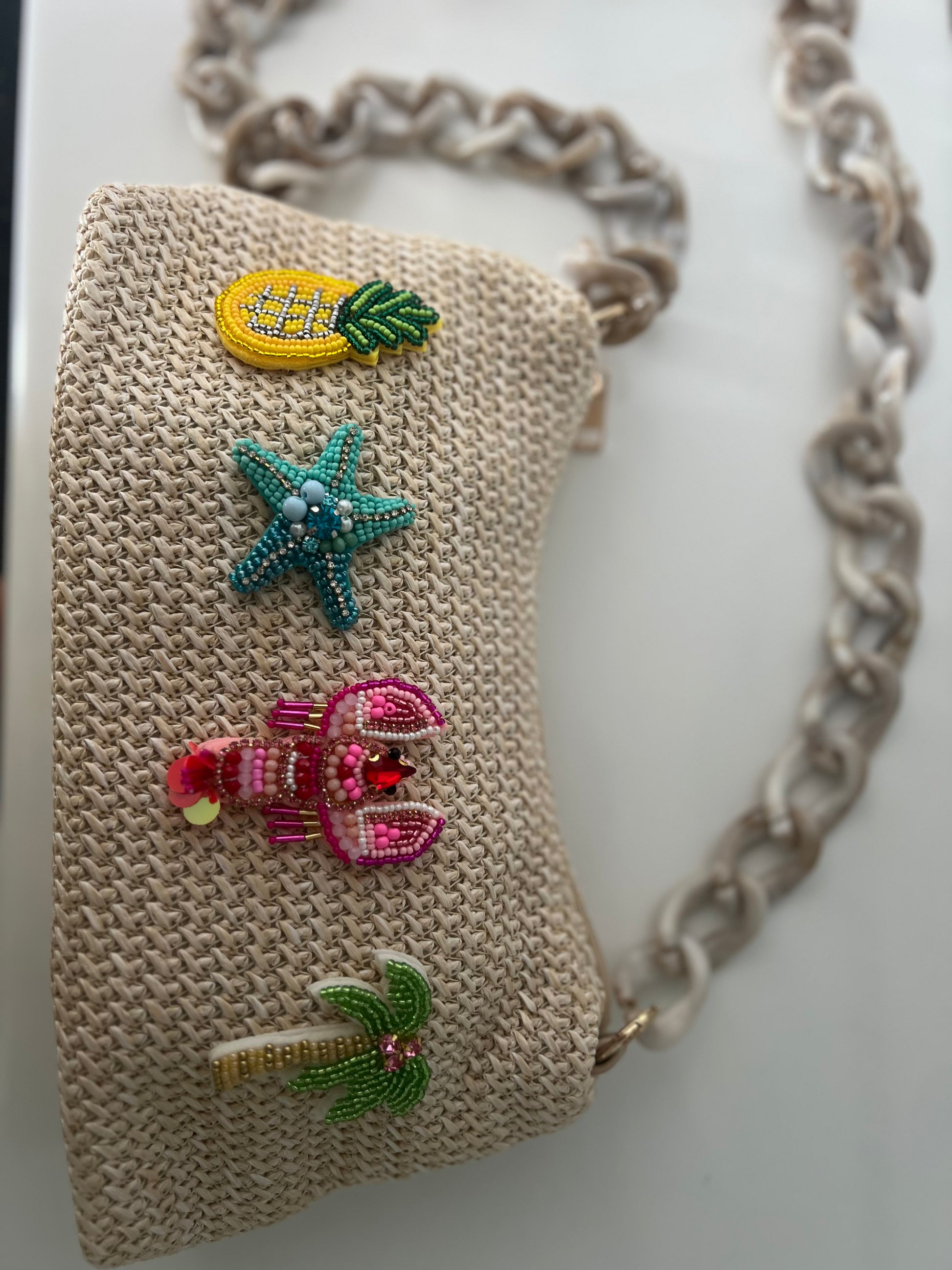 Lovely Woven Fabric, Hand-Made Beaded Embellishment With Chunky Cross Body Chain